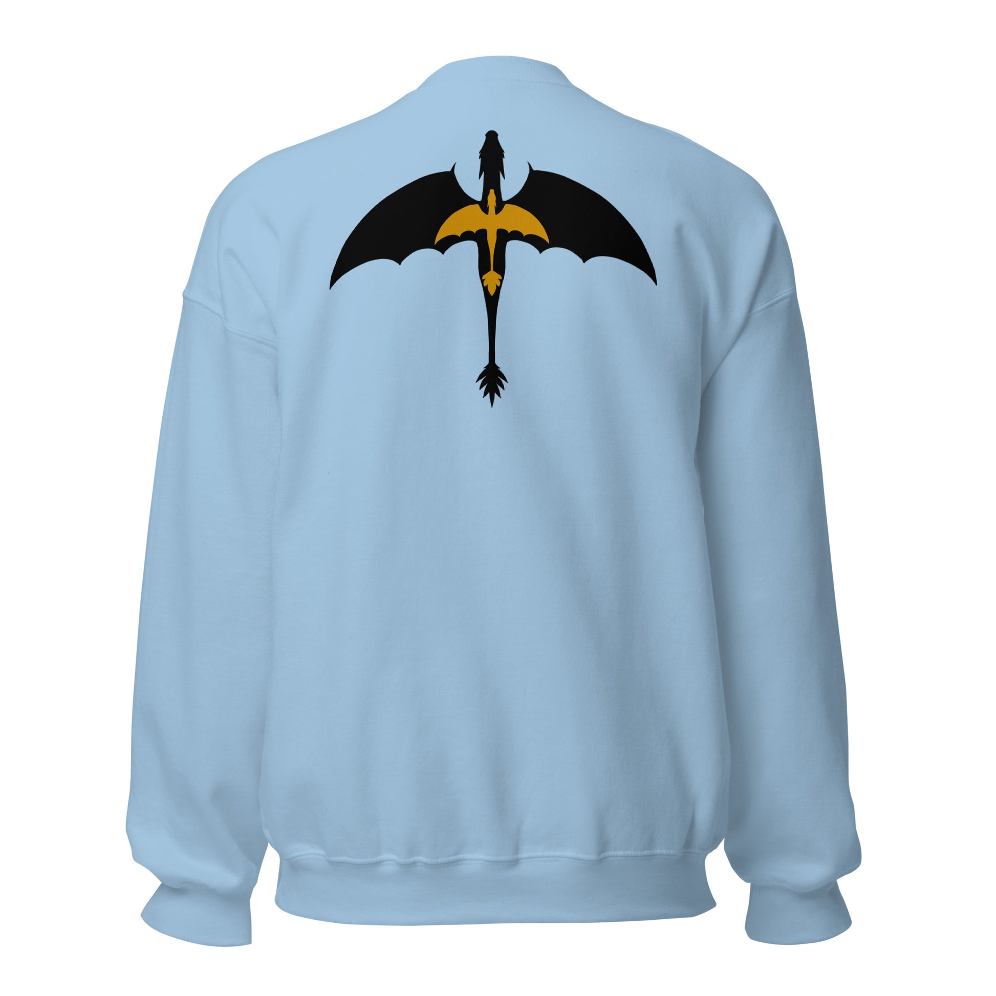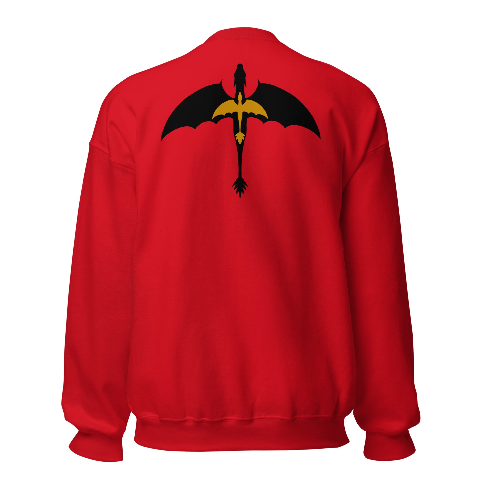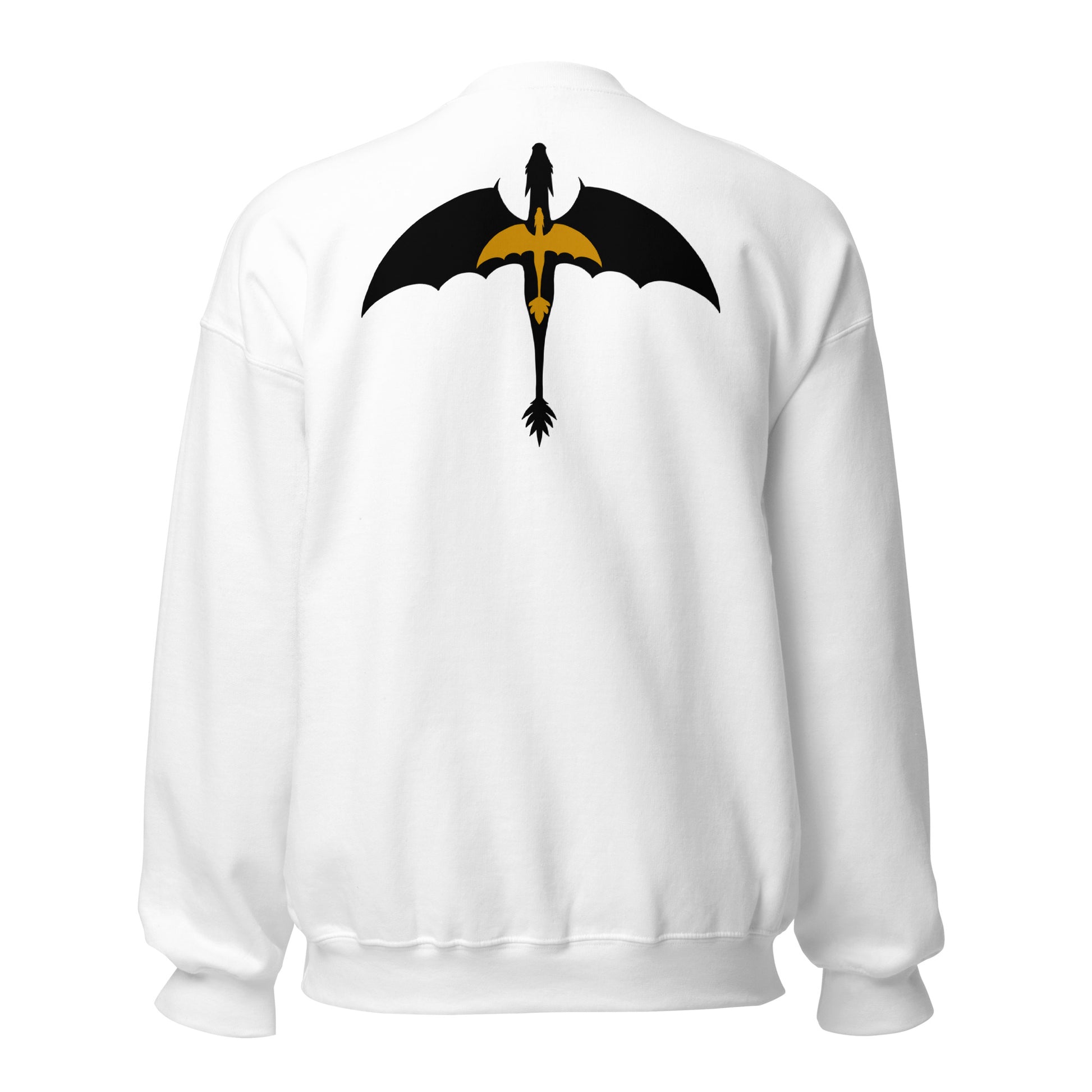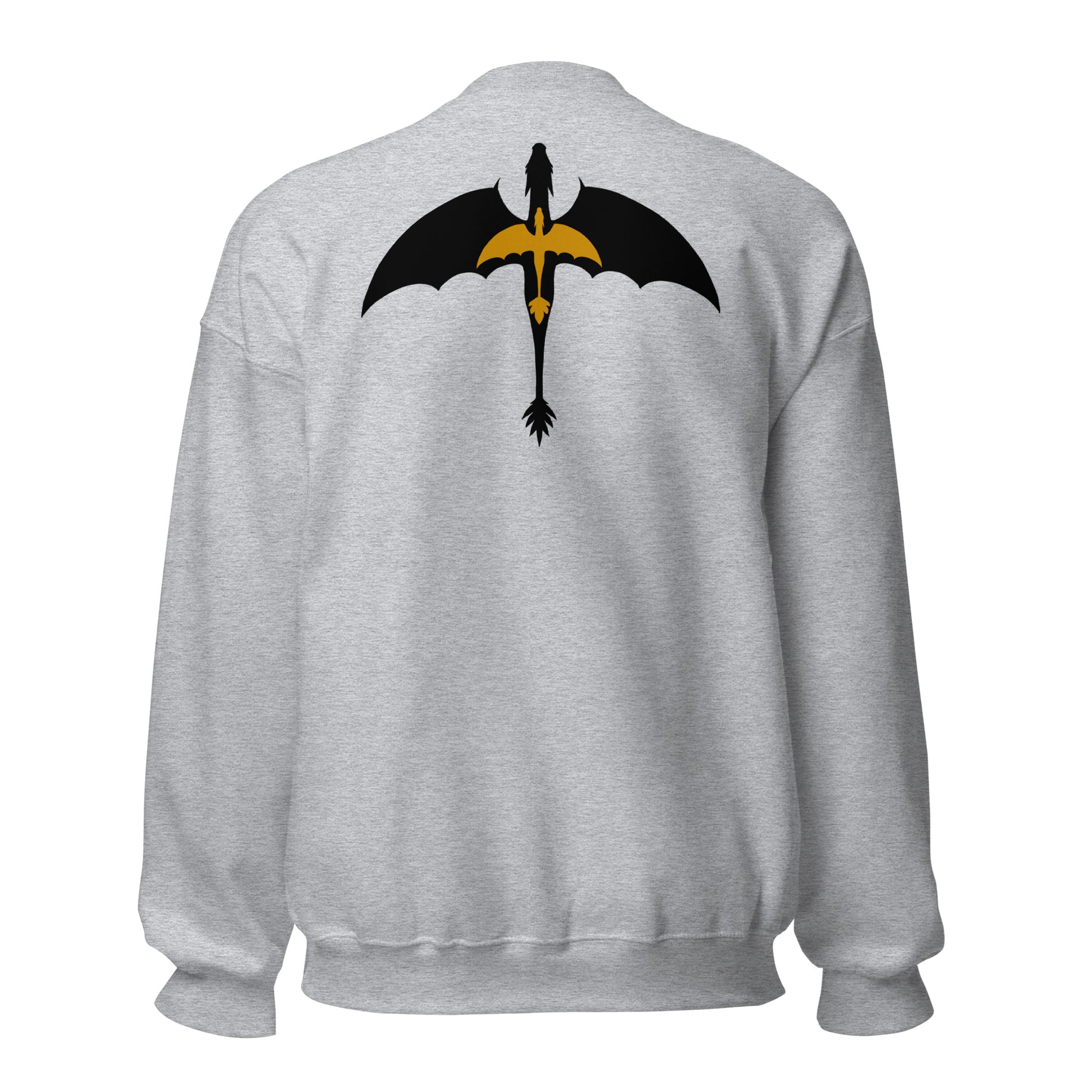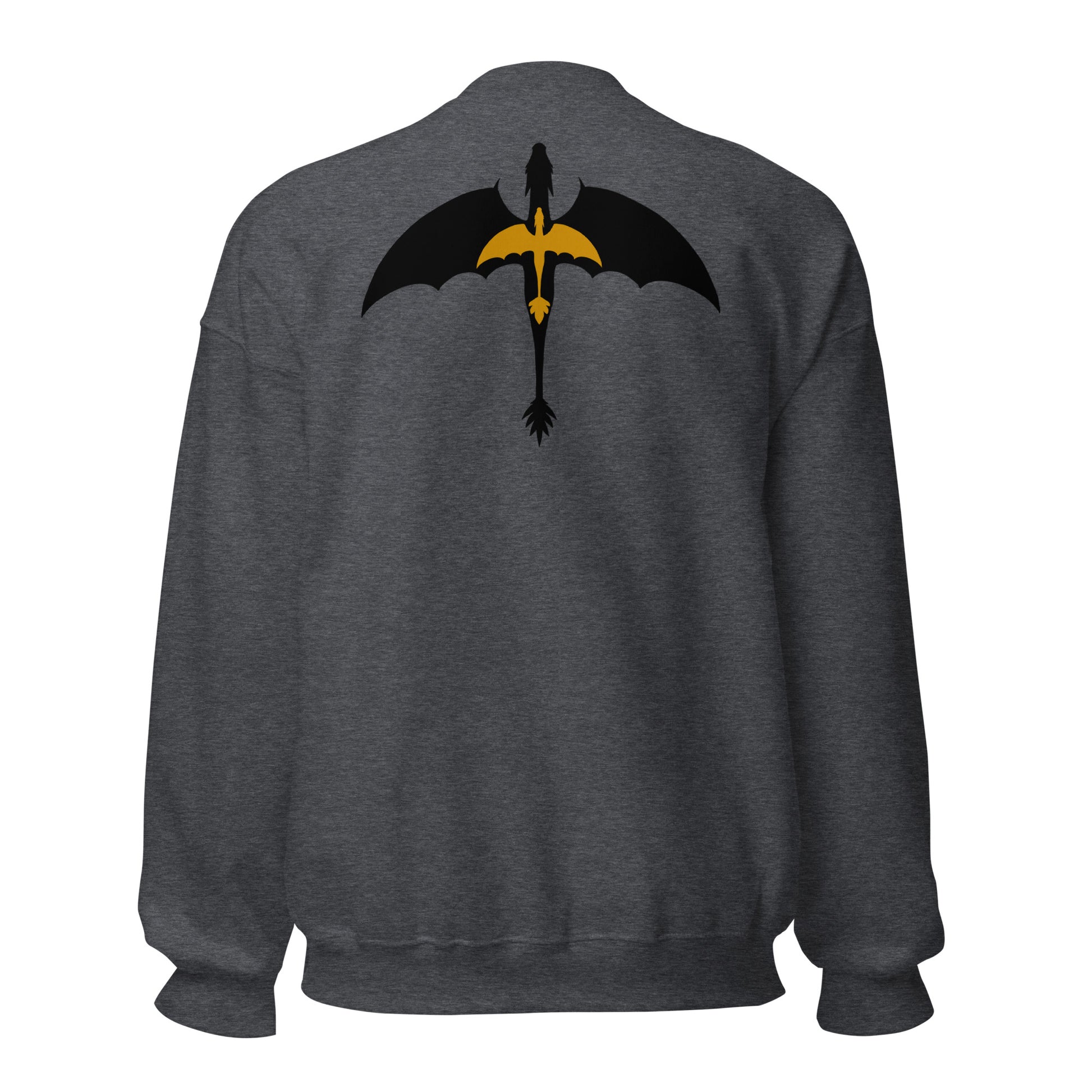 This sweatshirt is embroidered on the front with a DTG printed image on the back.