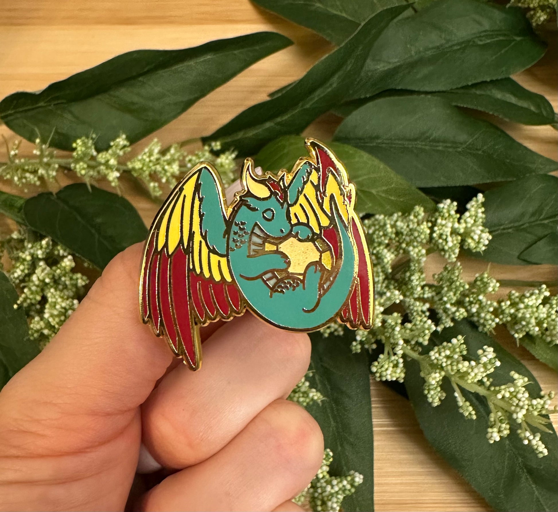 Not only is this hard enamel pin adorable, but it is also glittery! This pin is 1.5 inches, gold plated and secured with a locking clasp.