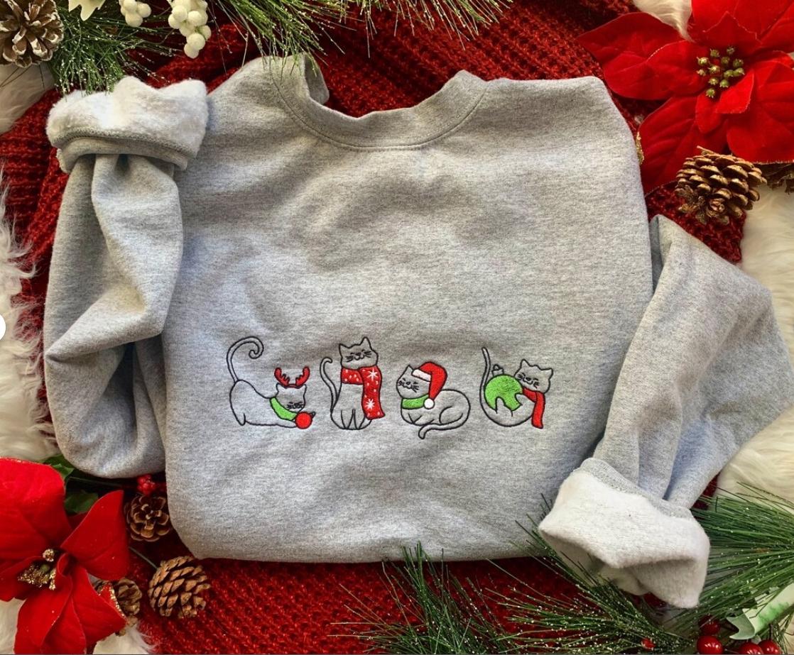Meowy Christmas! Enjoy the season with this adorable embroidered kitty sweatshirt!
