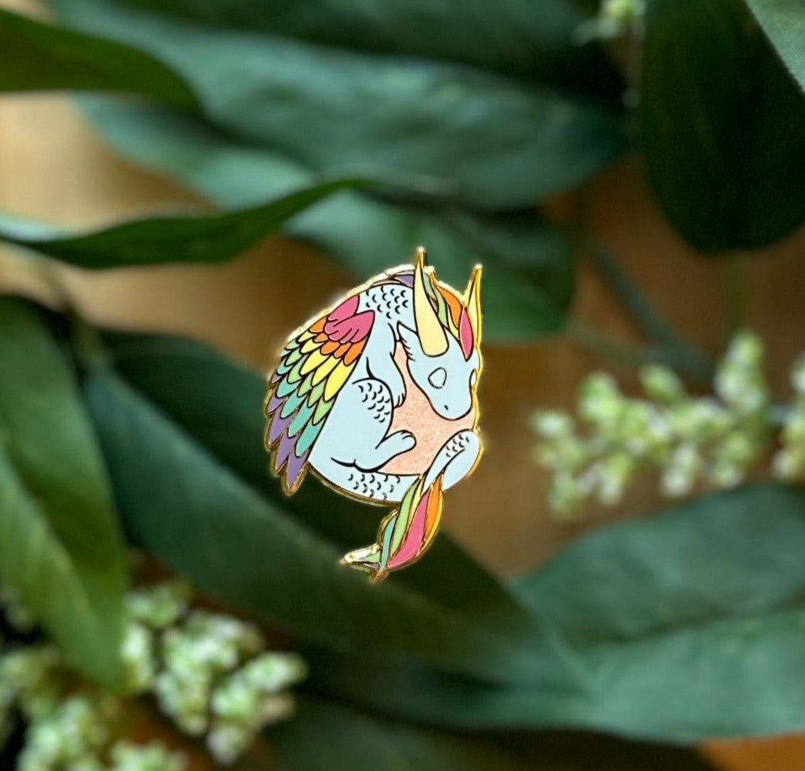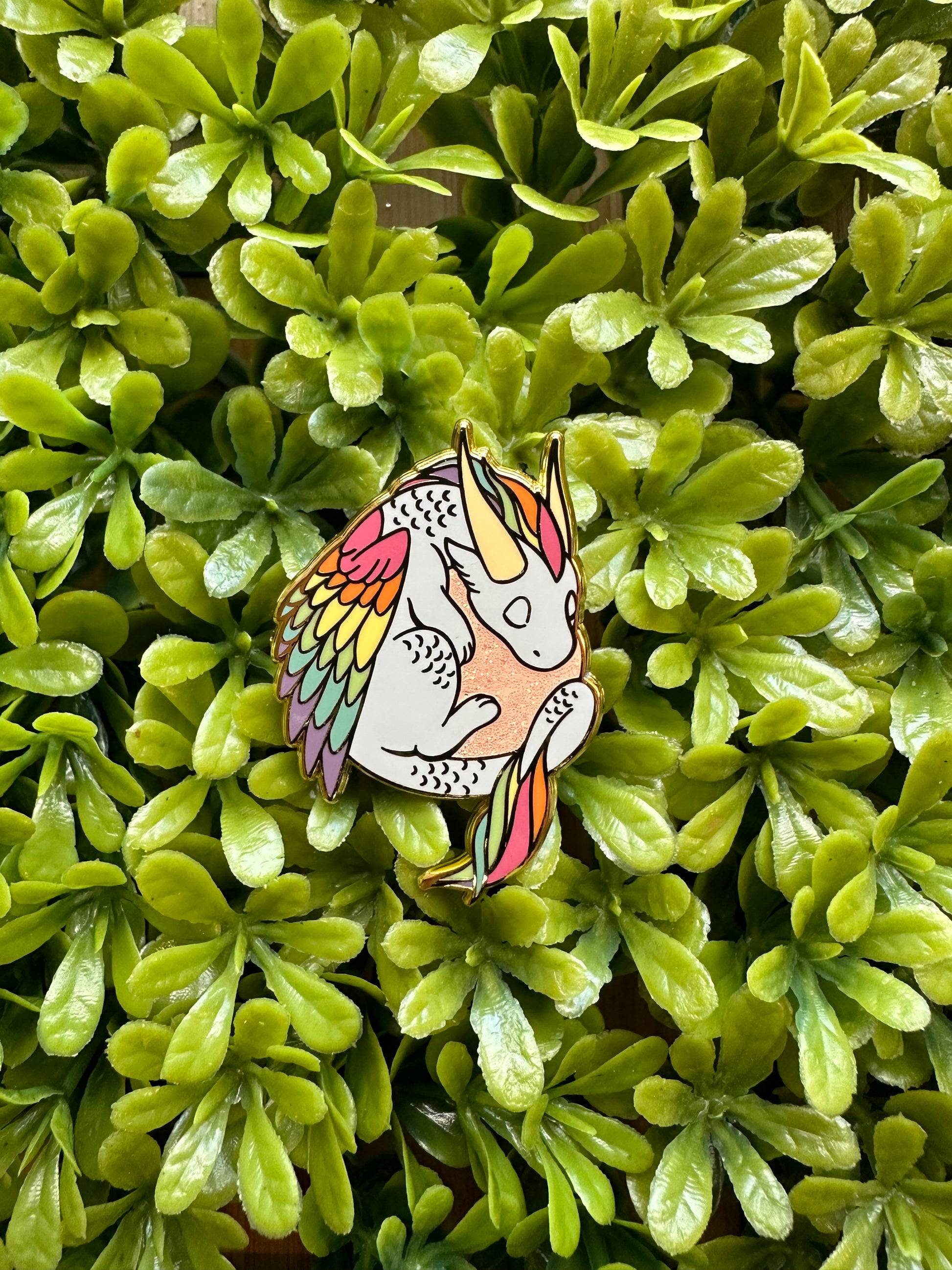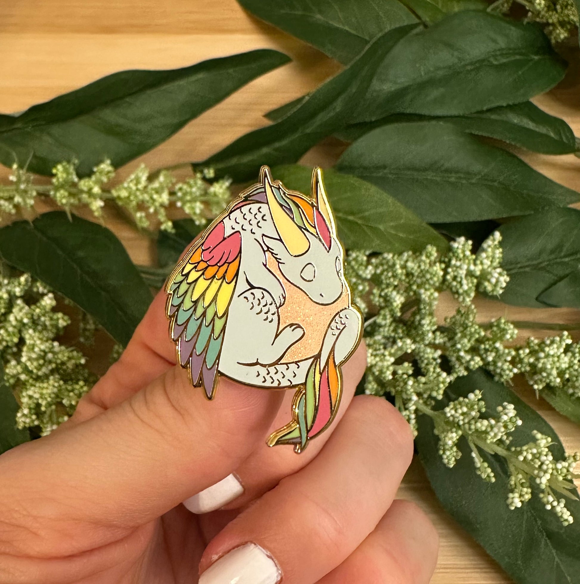 Not only is this hard enamel pin adorable, but it is also glittery! This pin is 1.5 inches, gold plated and secured with a locking clasp.