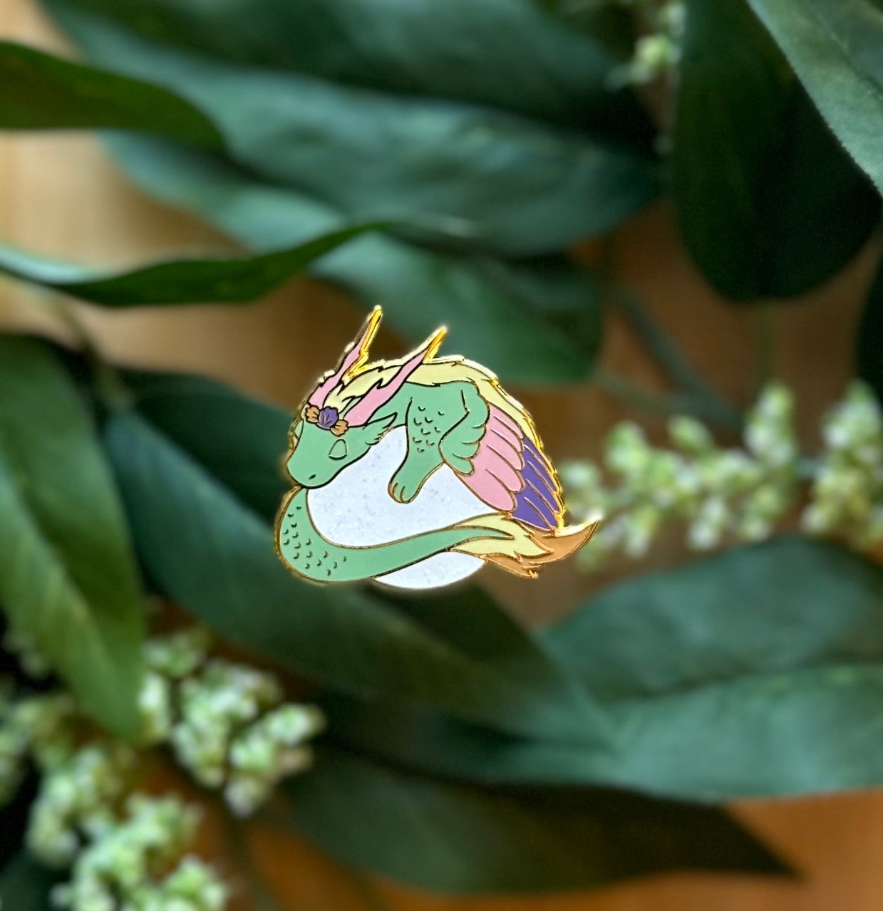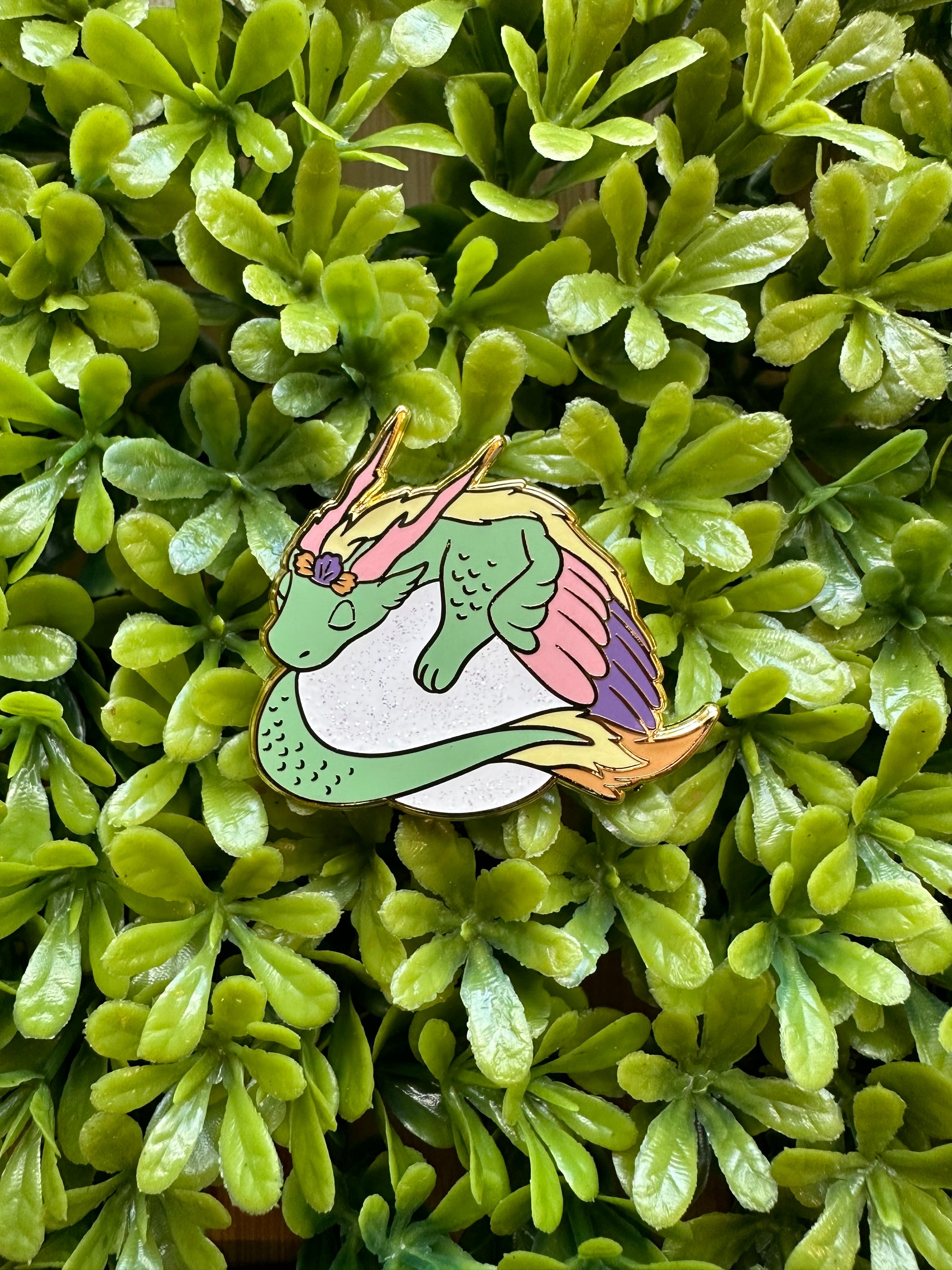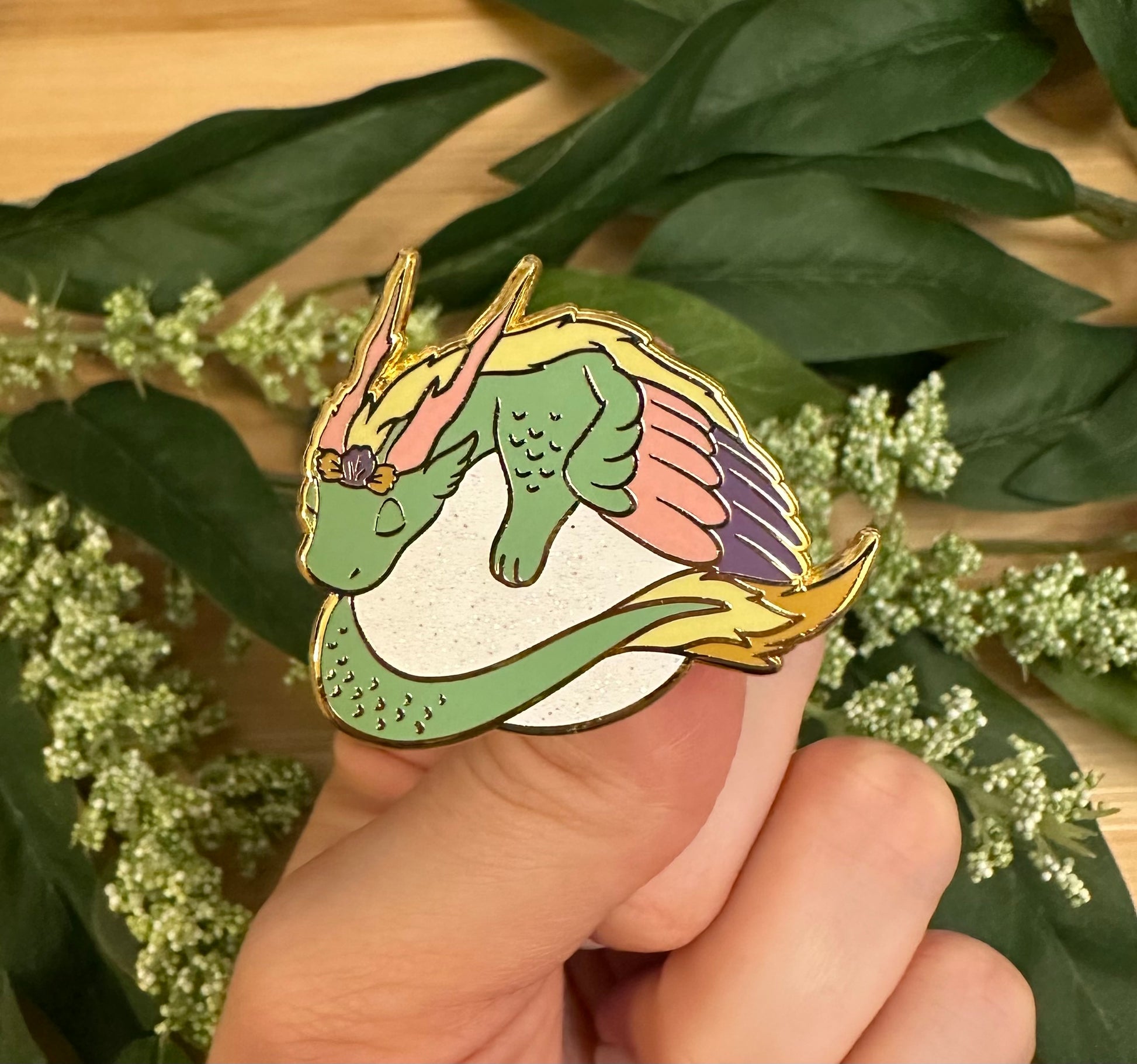 Not only is this hard enamel pin adorable, but it is also glittery! This pin is 1.5 inches, gold plated and secured with a locking clasp.