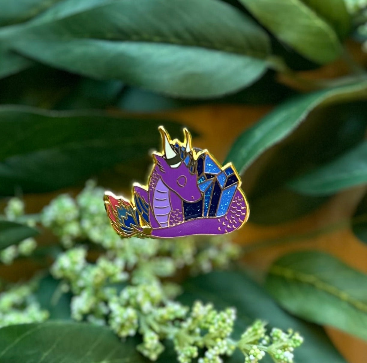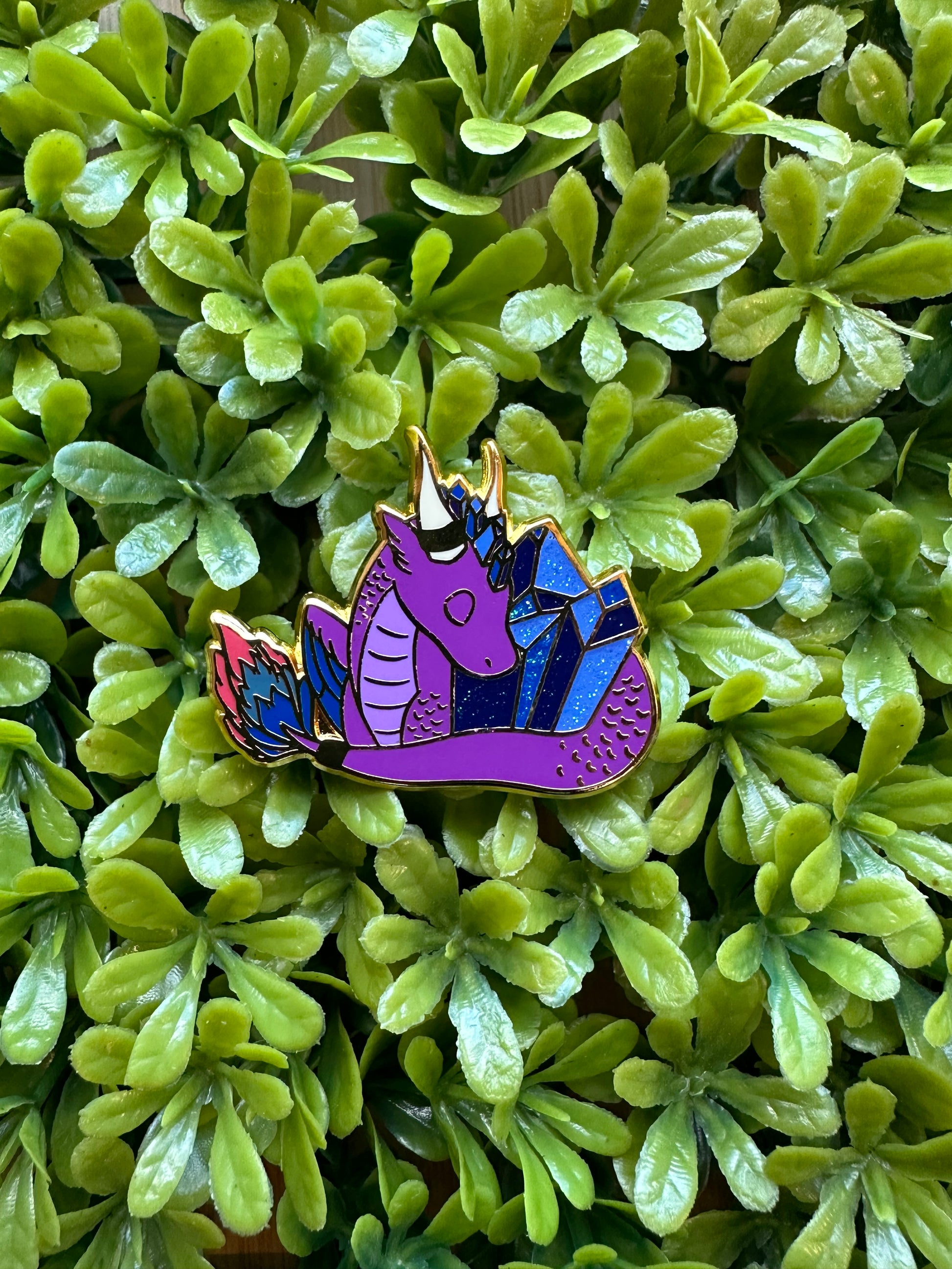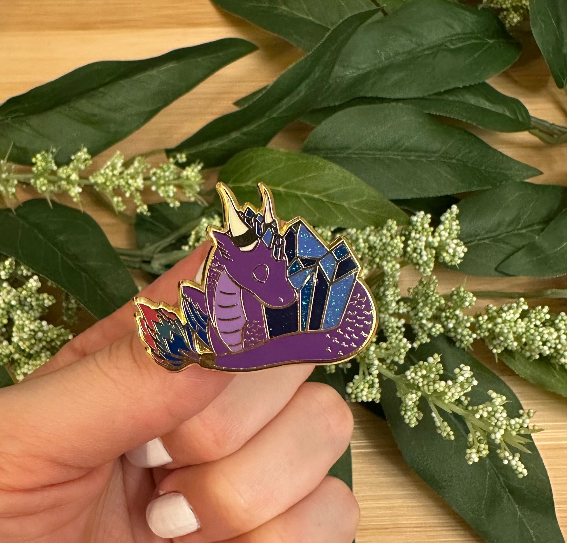 Not only is this hard enamel pin adorable, but it is also glittery! This pin is 1.5 inches, gold plated and secured with a locking clasp.